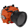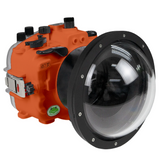 Sony A7 IV FE12-24mm f4g / FE16-35 f4 ZA OSS Salted Line series UW camera housing with 6" Dome port V.10 Surf and Zoom rings (Standard port included). Without lens shade. Orange